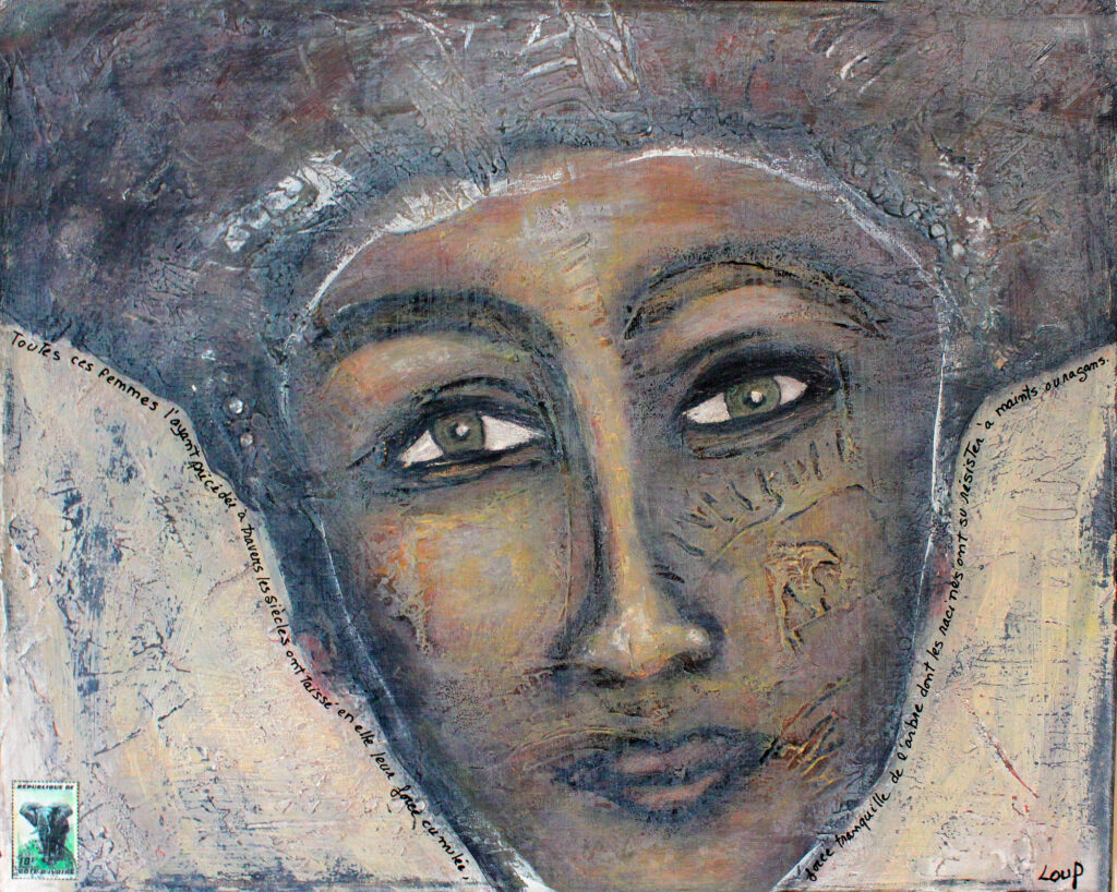 Chère madame Zakho – 2018/ Série « Cartes postales de mes transhumances » Technique mixte sur toile (16×20 pouces)